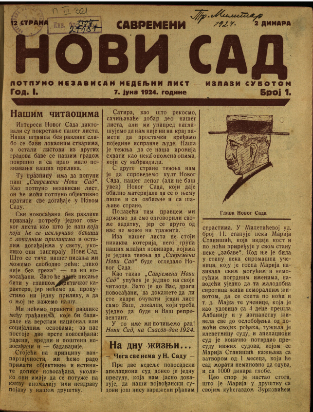НОВИ Сад : потпуно незвисан орган јавног мишљења / одговорни уредник Велисав Спасић. - Год. 2, бр. 1 (1925)-год. 18, бр. 920 (1941). - Нови Сад : [б. и.], 1925-1941 (Нови Сад : Штампарија Душан Чампраг). - 34 cm COBISS.SR-ID 25283340 |