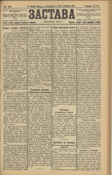 Год. 48, бр. 224 веч. (3. окт. = 16. окт. 1913)