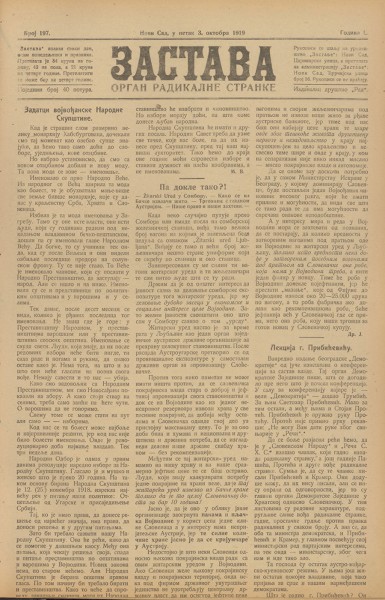 У периоду од септембра 1904. све до 1914. године публикација је имала два издања, Претраживање Заставе по тексту могуће је на сајту Претражива дигитална библиотека
