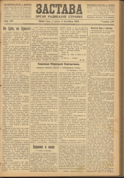 Год. 54, бр. 225 (3. окт. 1923)