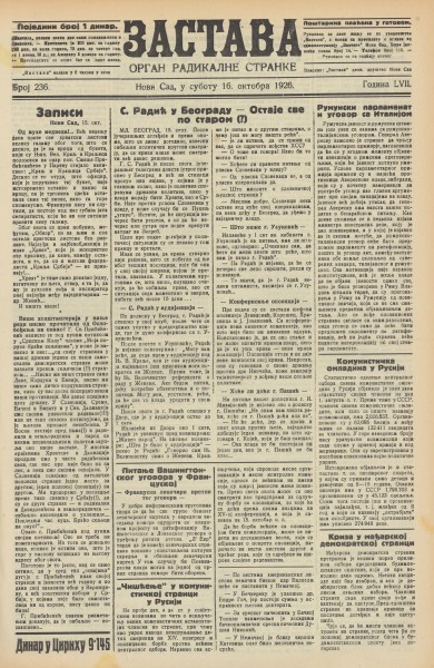 ЗАСТАВА / власник и уредник Светозар Милетић. - Год. 1, бр. 1 (9. фебруар