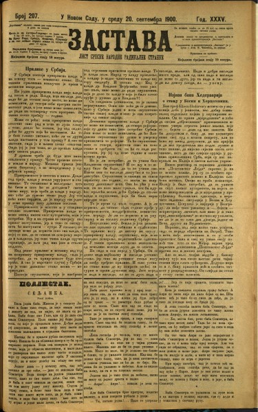 У периоду од септембра 1904. све до 1914. године публикација је имала два издања, Претраживање Заставе по тексту могуће је на сајту Претражива дигитална библиотека